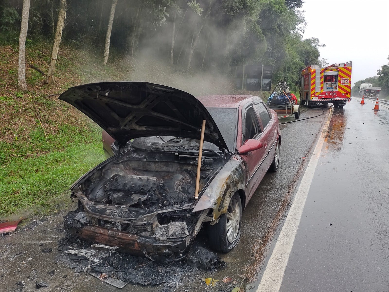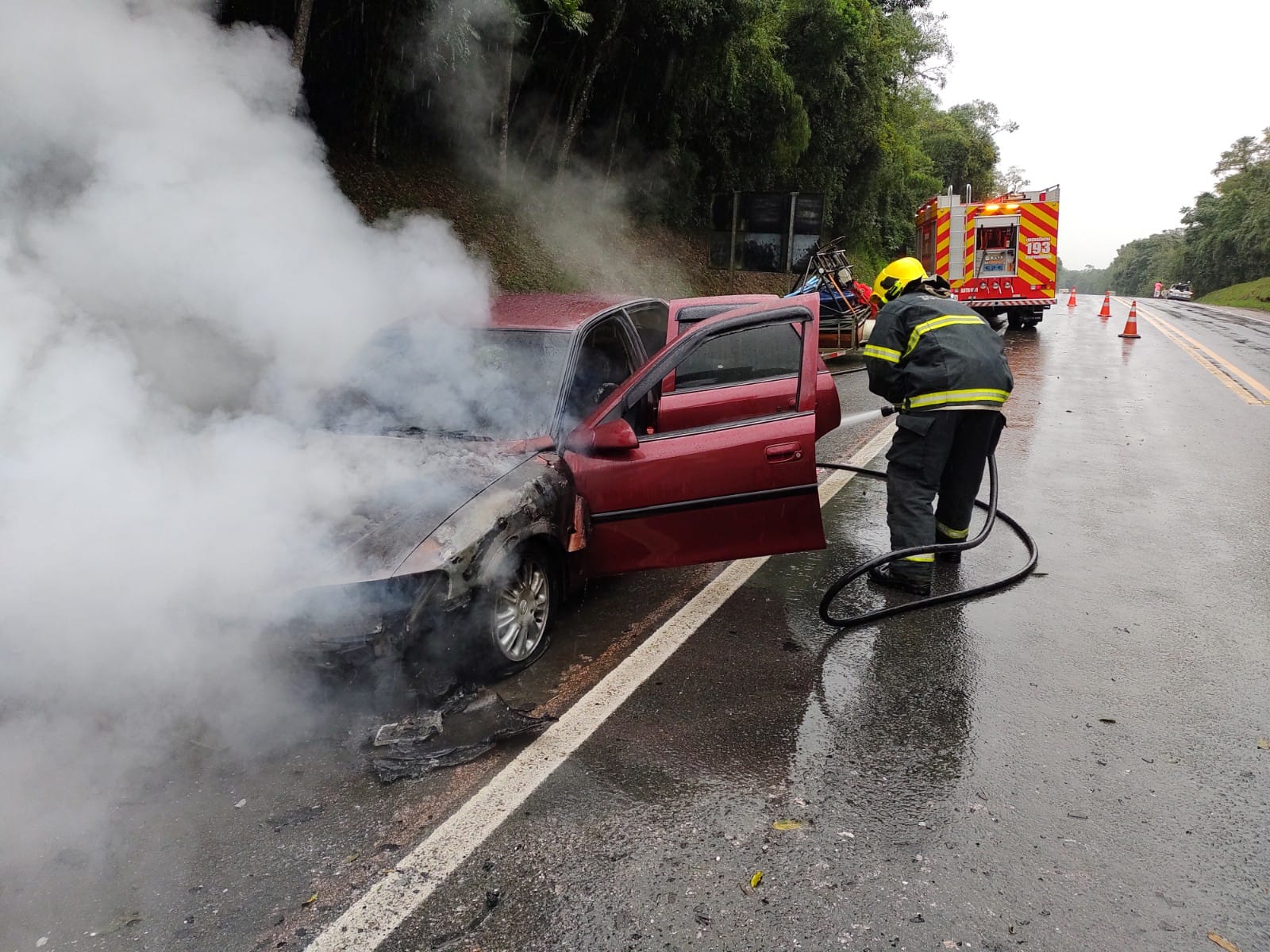 Papanduva – O Corpo de Bombeiros foi acionado para atender ocorrência de incêndio em veículo na BR-116 próximo ao trevo de acesso a Major Vieira.