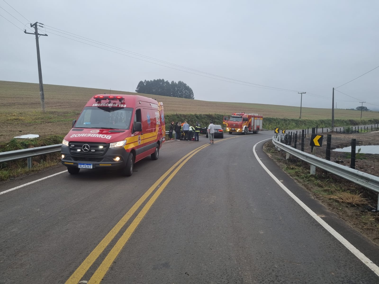 Informações do Corpo de Bombeiros dão conta de que o veículo saiu da pista batendo em um barranco e veio a capotar.