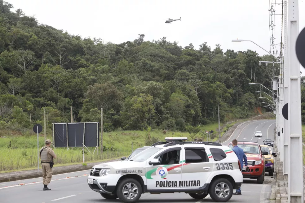 Durante todo o dia, a polícia procurou pelo homem. As buscas foram feitas com drone, helicóptero e cães. Barreiras foram montadas em todas as saídas de Massaranduba. Além disso, os policiais passaram em de casa em casa para pedir ajuda para os moradores.