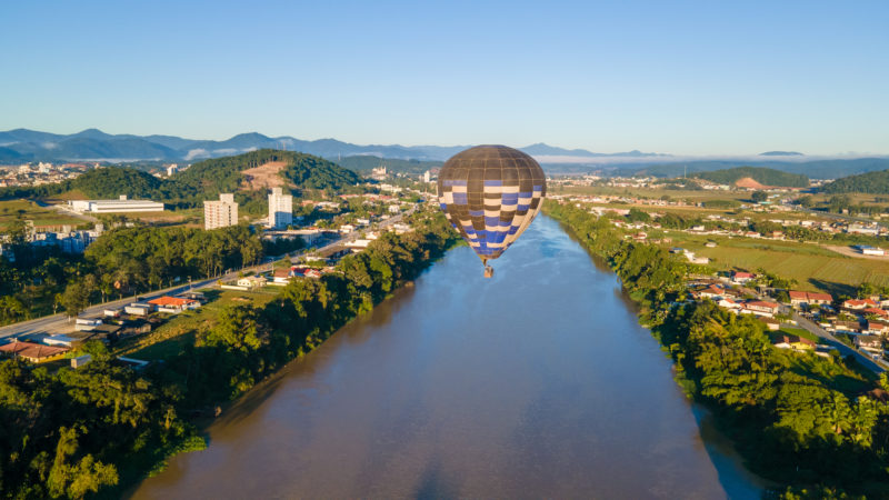 Voando de balão na cidade, você enxergará do alto o Rio Itajaí-Açu e suas planícies próximas, as serras nos extremos Norte e Sul e até o mar. O cenário é emoldurado pelo nascer ou pelo pôr do sol, os dois únicos horários do dia em que é permitido o passeio, por conta das condições climáticas.