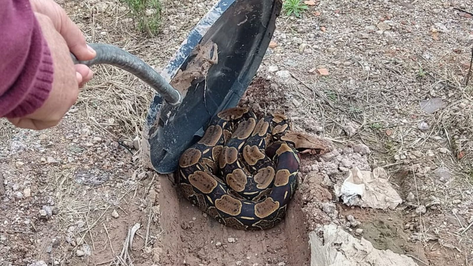Jiboia de quase dois metros é capturada em terreno de empresa