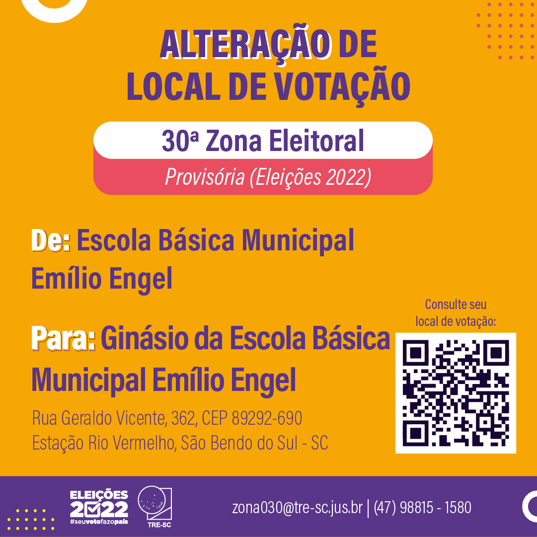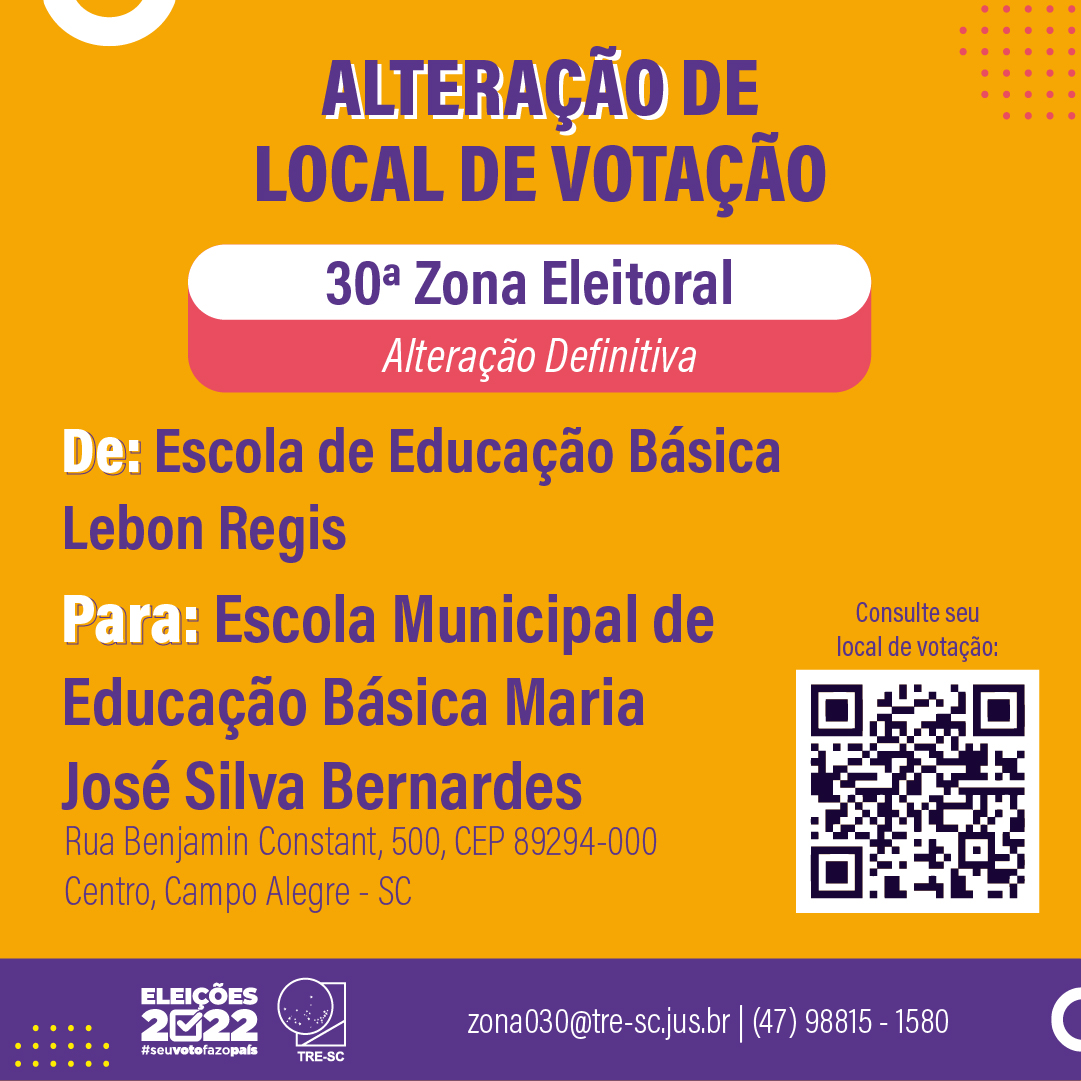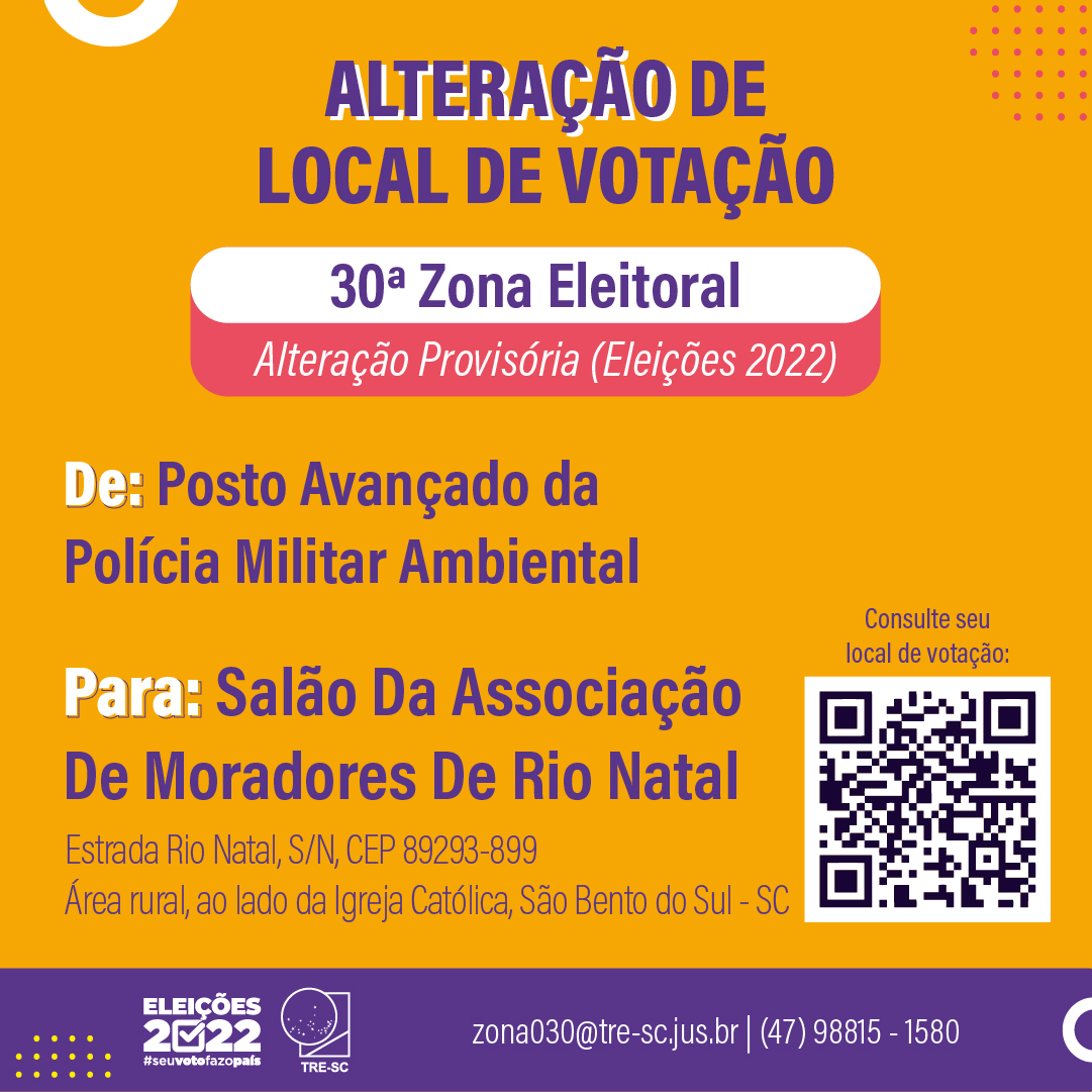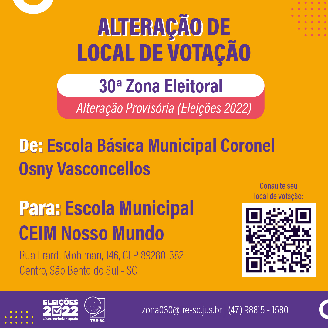 ELEIÇÕES 2022: Alteração de Locais de Votação em São Bento do Sul e Campo Alegre