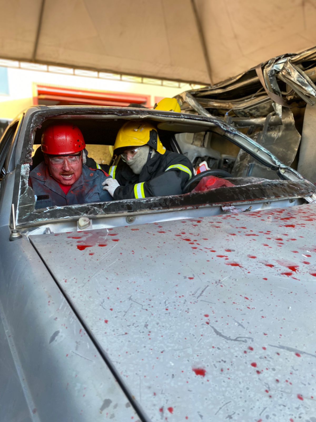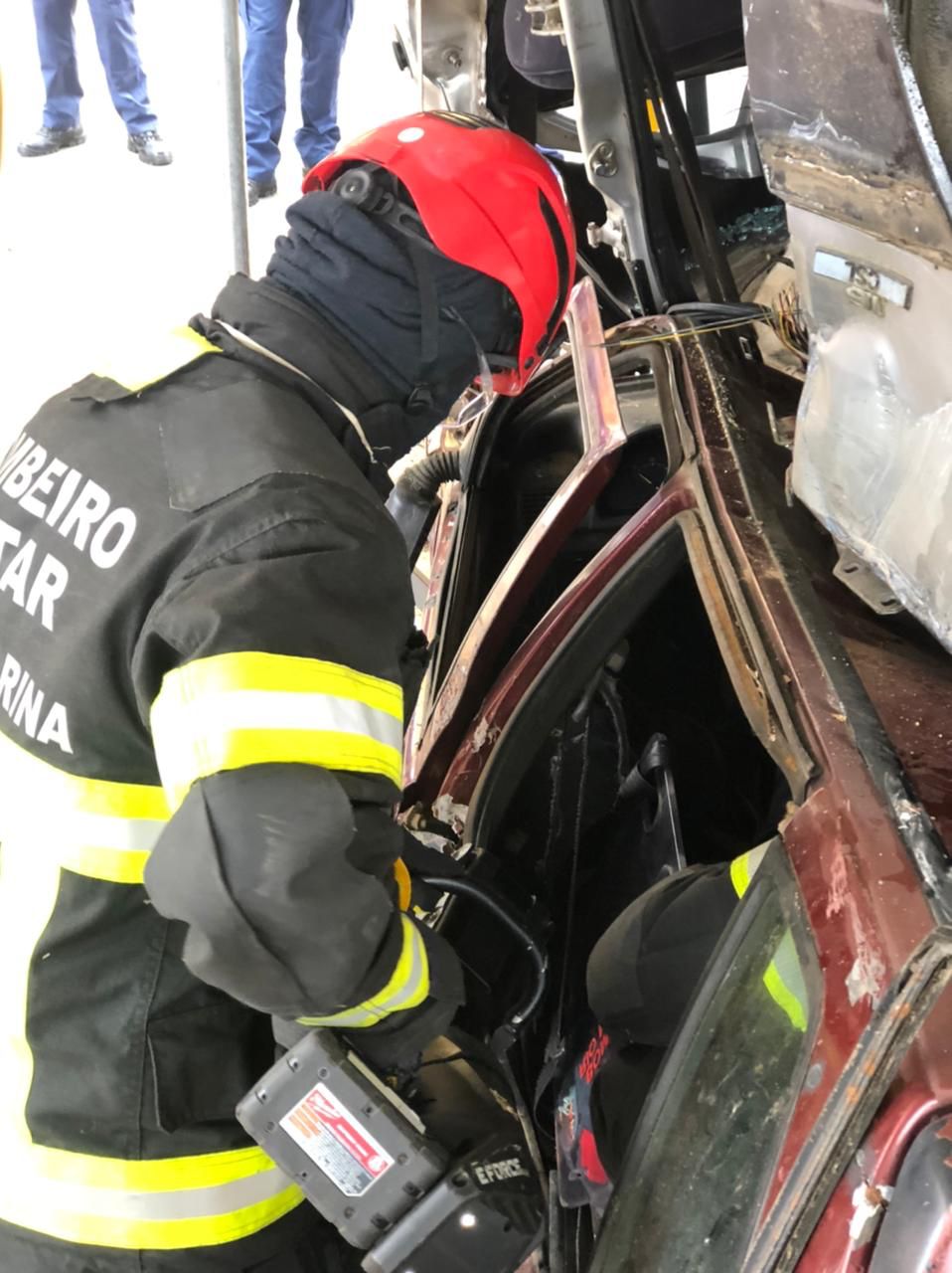Após revisão do conhecimento teórico, com foco na rotina de resgate, foi possibilitado aos bombeiros o treinamento prático com ênfase nas ações de avaliação de cena, gerenciamento de riscos, prioritariamente em estabilizações avançadas, técnicas de desencarceramento e extração.