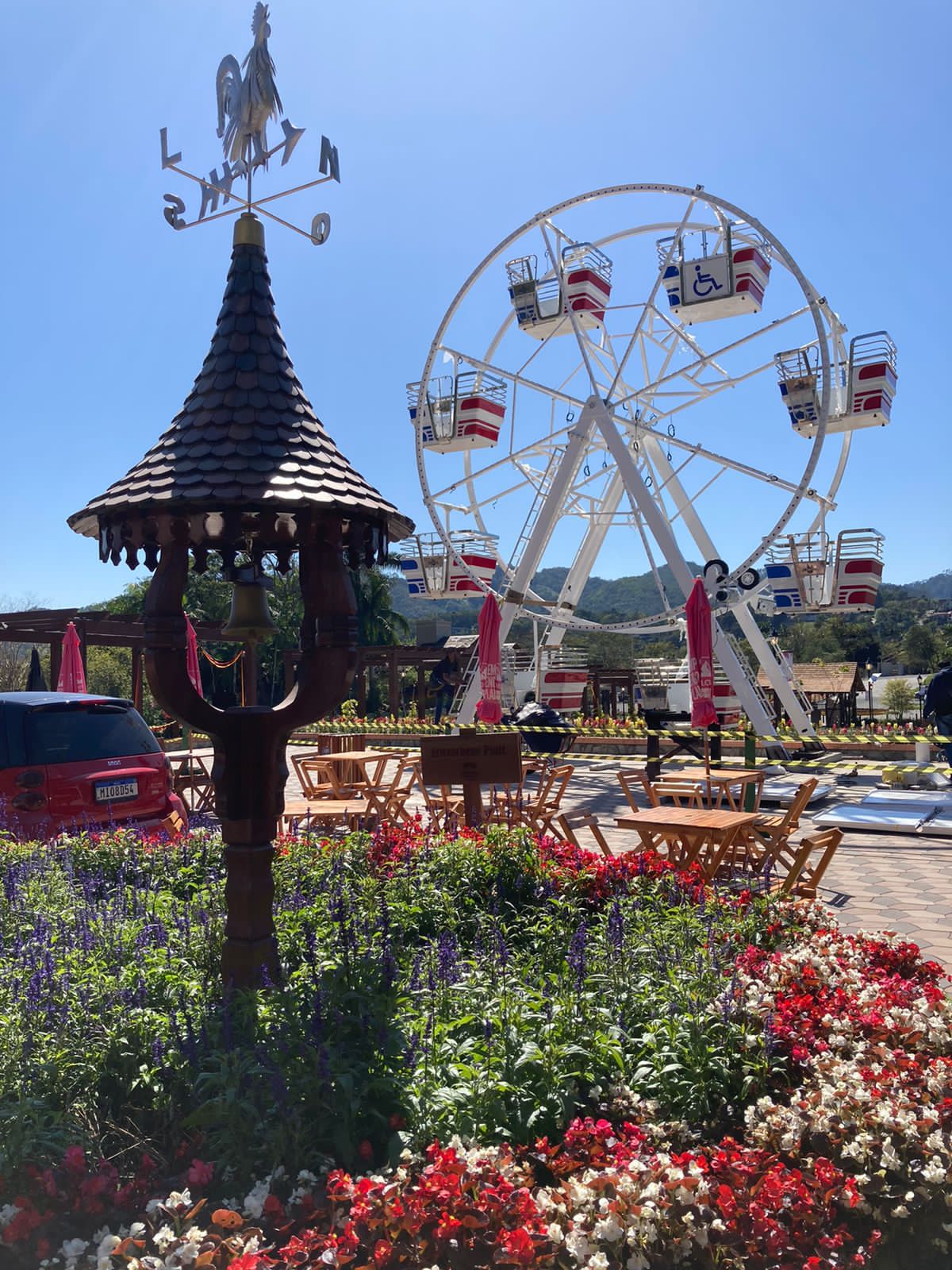 Pomerode – O Alles Park, em Pomerode (SC) apresenta ao público sua mais nova atração. Uma roda gigante vai ser inaugurada nesta quinta-feira (29) às 12h. Com dez metros de altura e capacidade para 32 pessoas, o equipamento foi instalado ao lado da entrada do parque temático. São oito cabines com capacidade para quatro pessoas cada, sendo que uma delas é especial e pode ser adaptada para um cadeirante mais acompanhante.