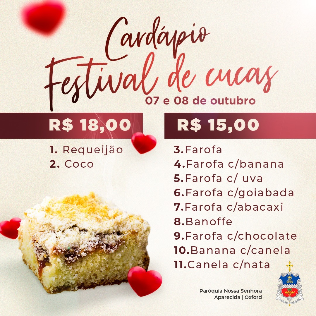 São Bento do Sul – A Paróquia Nossa Senhora Aparecida de Oxford está promovendo um festival de cucas.