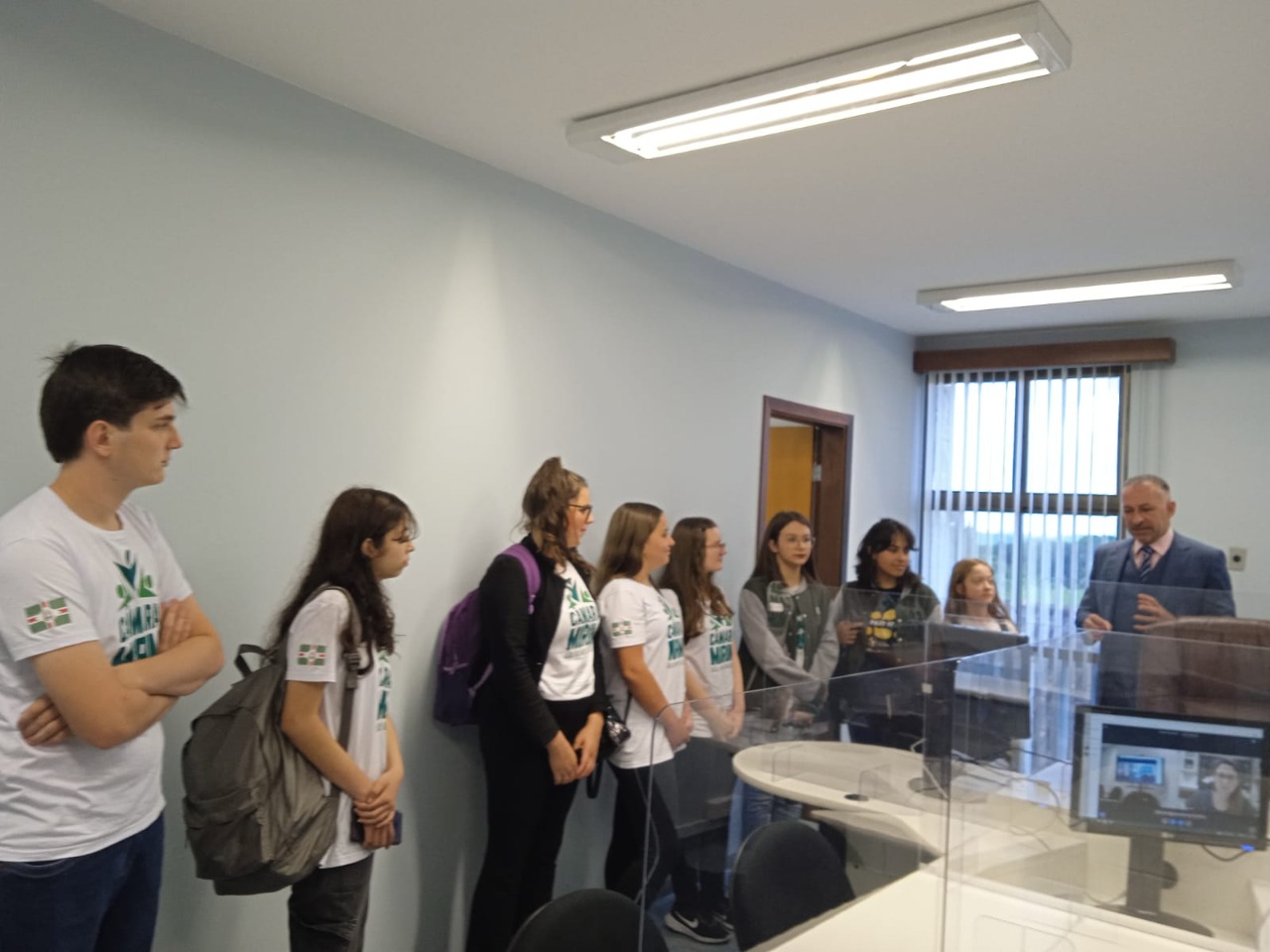 São Bento do Sul – Na quarta-feira (23) os Vereadores Mirins realizaram visita ao Fórum de São Bento do Sul, com o objetivo de conhecer melhor a estrutura do Poder Judiciário.