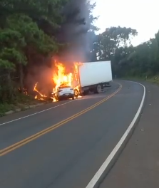 TRAGÉDIA: Casal morre após carro atingir caminhão e pegar fogo