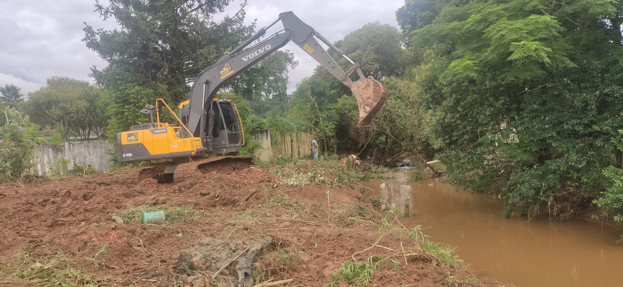 São Bento do Sul – Na quinta-feira (23) equipes da Secretaria de Obras trabalharam fazendo a limpeza no Rio Banhados no bairro Serra Alta.