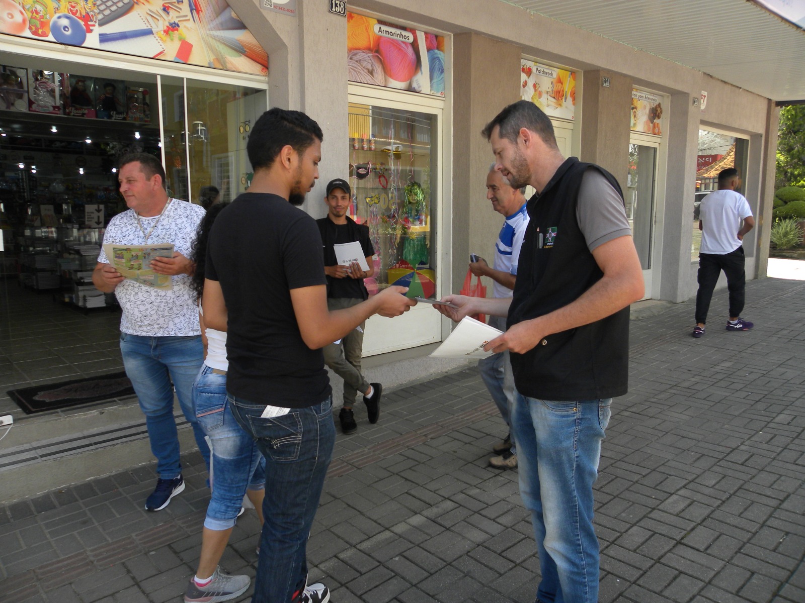 A equipe distribuiu panfletos foto: Larissa Mayara Hirt da Maia