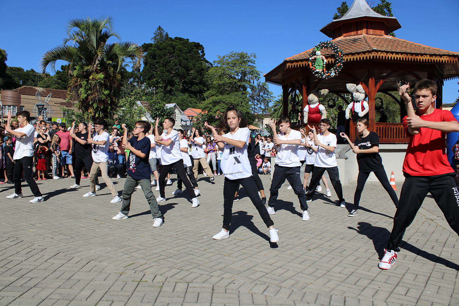 São Bento do Sul – A tarde de domingo (2) foi de muita festa na Praça Jardim dos Imigrantes. O dia de sol contribuiu para proporcionar um ambiente feliz e contagiante para as famílias que prestigiaram o evento “Alegria de Graça, é Festa na Praça”, promovido pela Prefeitura, através da Fundação Cultural, em parceria com o SESC, Biblioteca Pública, Ballare Academia de Dança, Grupo Hip Hop X-style e Grupo Folclórico Germânico Edelweiss.
