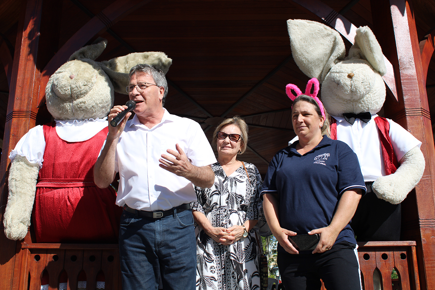 O prefeito Antonio Tomazini, acompanhado da primeira-dama, Mônica Tomazini, esteve presente e aproveitou para deixar sua mensagem para o público. “É gratificante ver as crianças brincando, se divertindo e desfrutando deste dia tão bacana. Parabenizo toda a organização através da Fundação Cultural por proporcionar esta festa. Aproveito para destacar que todo esse trabalho de decoração, apresentações culturais e outras festividades é para vocês. Aproveitem as atrações”, disse.