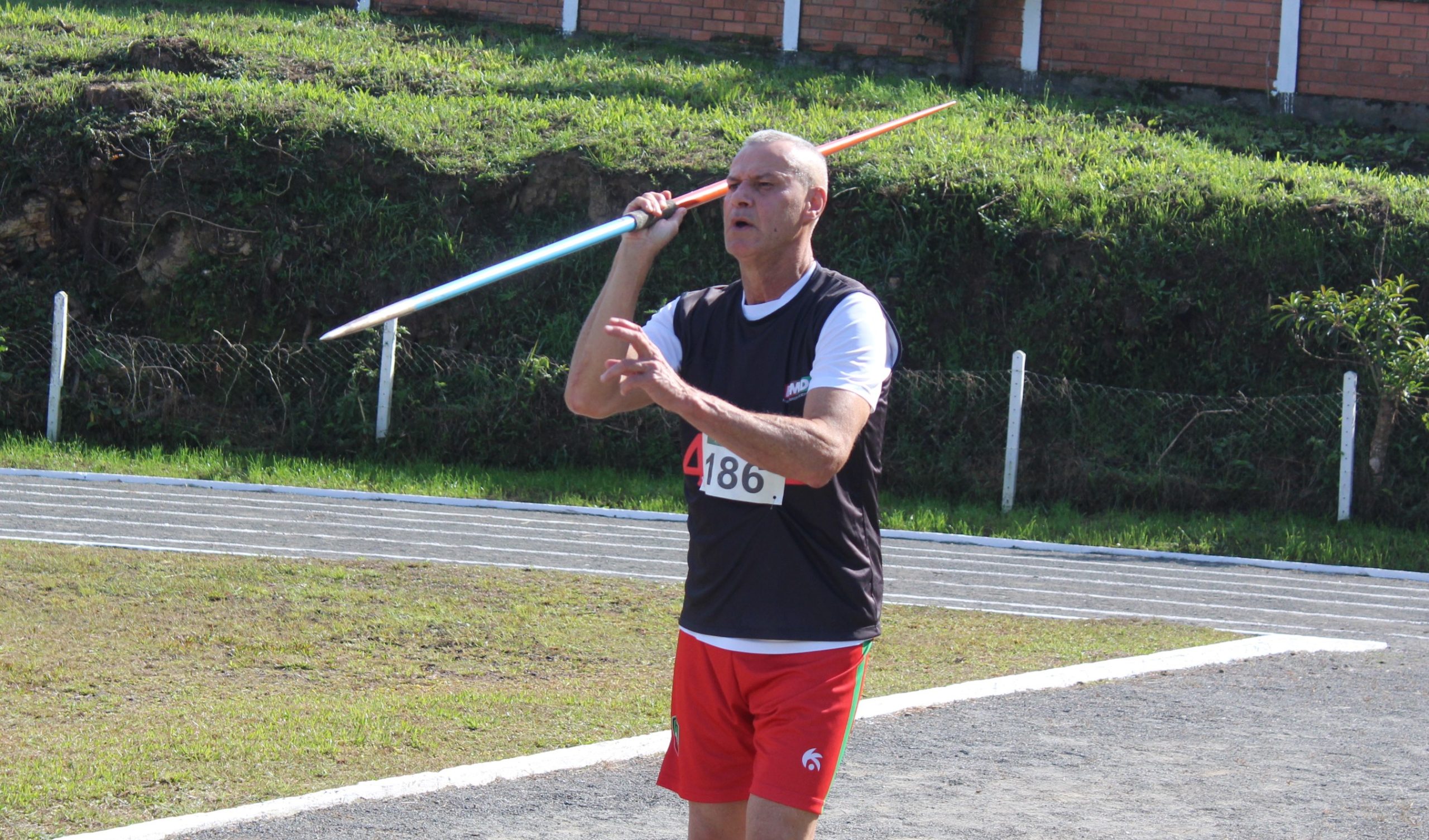 Muito conhecido na região por ser incentivador do Futsal, o professor Carlos Eurides Nascimento participou da prova de arremesso de Dardo. Logo no primeiro arremesso ele garantiu o melhor de todos. Alcançou a marca de 25,45 metros e não foi superado por nenhum competidor. “Capitão Nascimento”, como é chamado por alguns amigos, subiu ao mais alto do pódio e recebeu a medalha de ouro. “Estamos aqui para participar e contribuir para a nossa cidade. É muito bom estar entre amigos e ainda competindo”, disse para O Jornaleiro.