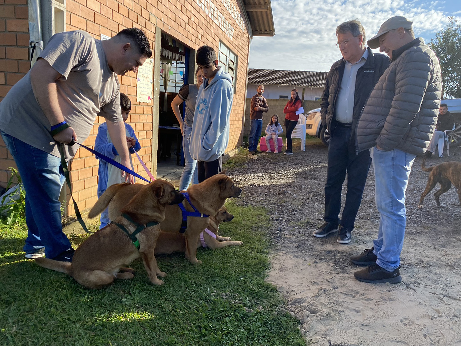São Bento do Sul – Através de uma ação da Prefeitura, por meio da Secretaria de Agricultura e Meio Ambiente, no último sábado (24), 82 animais foram castrados gratuitamente através de um mutirão, realizado na Associação de Moradores da Vila Eichendorf, no bairro Mato Preto. O prefeito Antonio Tomazini esteve acompanhando a ação, juntamente com o secretário de Agricultura, José Ermínio Grein, e o vereador Luiz Pesenti.