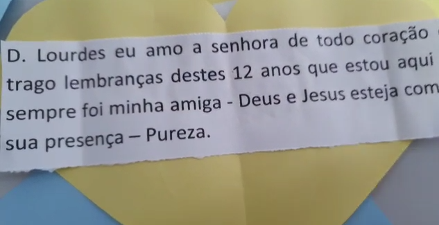 “Agradeço a Deus e a todas as pessoas que passaram pela minha vida durante esses anos. Ensinei muito e aprendi mais ainda. Gratidão!” disse Lourdes emocionada.