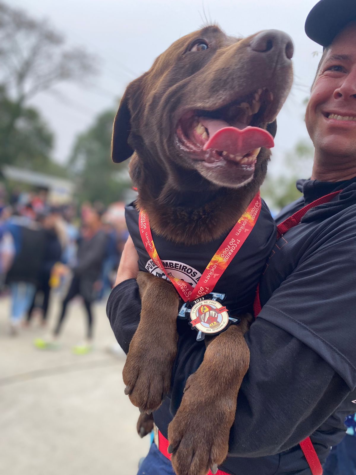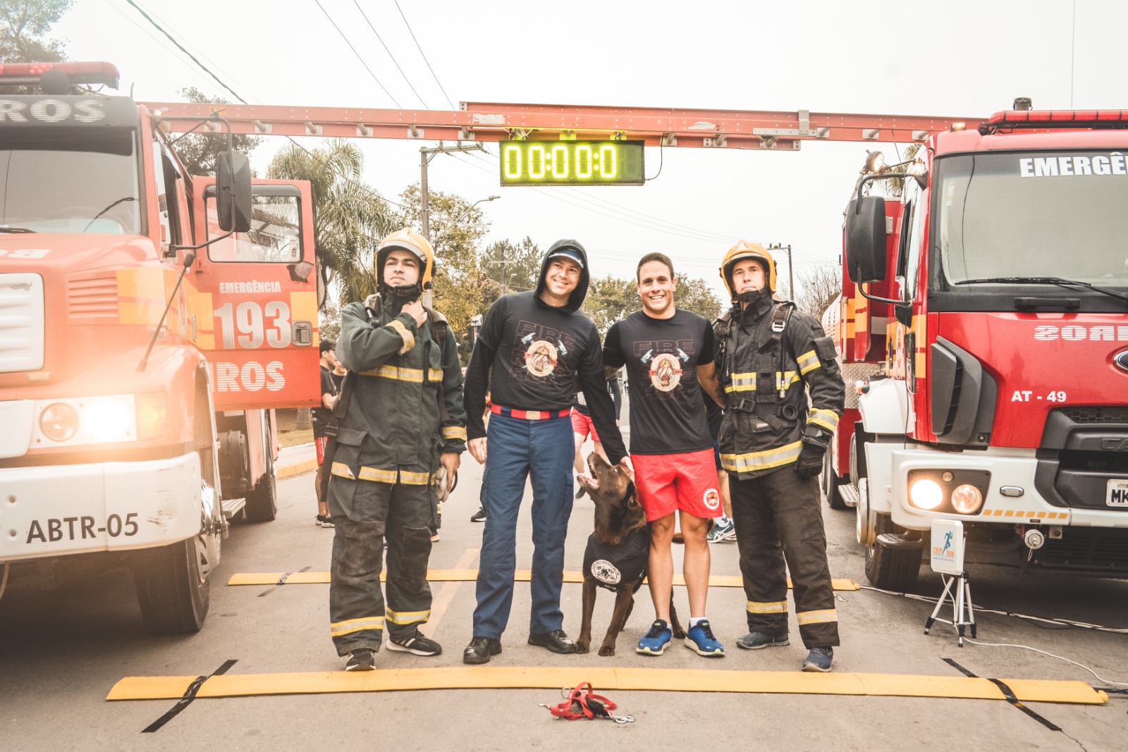 Ainda, tivemos a participação do projeto pernas solidárias, de bombeiros correndo com equipamento de proteção individual e respiratória e do cão de busca e resgate do Corpo de Bombeiros Militar de Santa Catarina, Chewbacca, todos completando a prova com êxito.