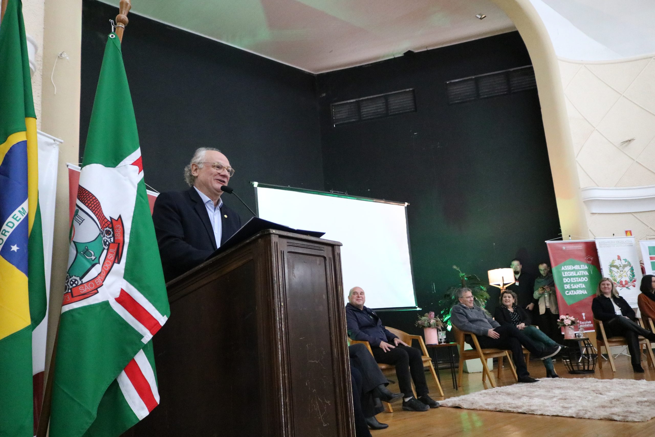 São Bento do Sul – Nesta sexta-feira (07), o prefeito Antonio Tomazini participou da solenidade de abertura do 1º Seminário Municipal de Educação Especial e Perspectiva da Educação Inclusiva no município de São Bento do Sul. O evento, promovido pela Comissão de Defesa dos Direitos da Pessoa com Deficiência da Assembleia Legislativa, em parceria com a Prefeitura, Secretaria Municipal de Educação e Apae do município, ocorre no Centro Cultural Dr. Genésio Tureck.