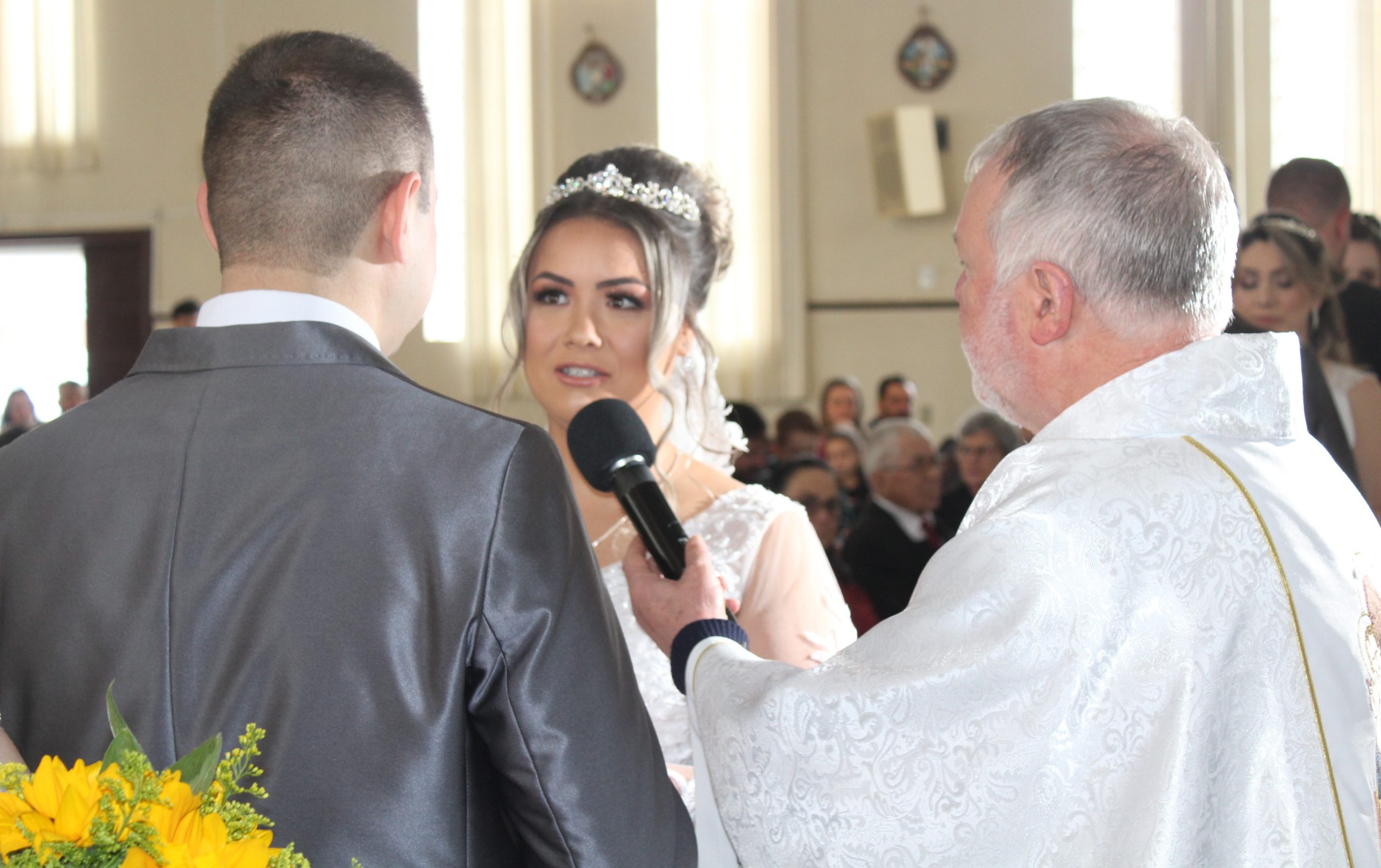 Em sua palavra aos noivos, Padre Humberto pediu para que eles tenham disposição para atender ao chamado de Deus na constituição da família e que não se afastem da igreja. “É muito importante que tenham em mente a importância de estar aqui na igreja de Deus para viver em comunidade e para restaurar e aumentar a fé a cada Palavra do Evangelho”, disse.