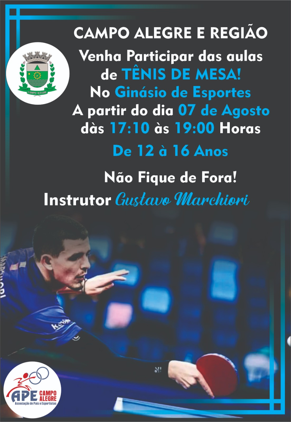 Campo Alegre – A Prefeitura de Campo Alegre por meio da Secretaria de Cultura, Turismo, Esporte e Lazer e em parceria com APE Campo Alegre iniciam na próxima segunda-feira (7) a oficina de Tênis de Mesa.