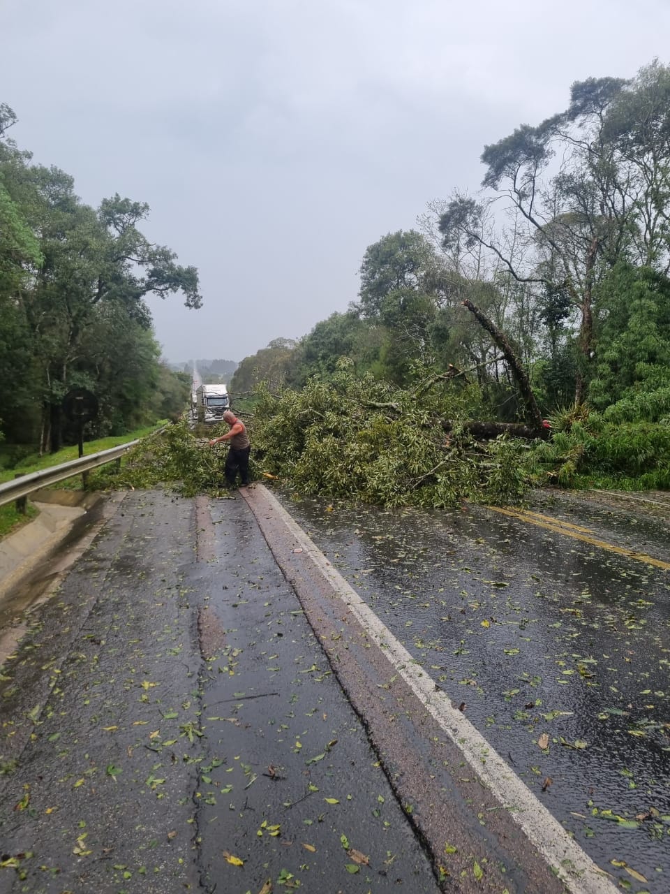 Além dos ventos fortes, a região também sofreu com a chuva e queda de árvores. Algumas rodovias ficaram interditadas por causa da queda de árvores.