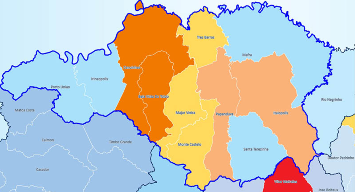Pelo menos 9 cidades foram atingidas e tiveram interrupções no fornecimento. Bela Vista do Toldo, Canoinhas, Itaiópolis, Mafra, Major Vieira, Monte Castelo, Papanduva, Santa Terezinha e Três Barras.