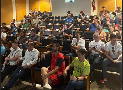Luciano Weidner presidente da FMD e a professora Camila Kaszubowsky da equipe técnica, estiveram em Concórdia para o Congresso técnico e segundo eles, de todas as edições dos JASC, esta é a que tem o maior número de cidades inscritas, totalizando 118.