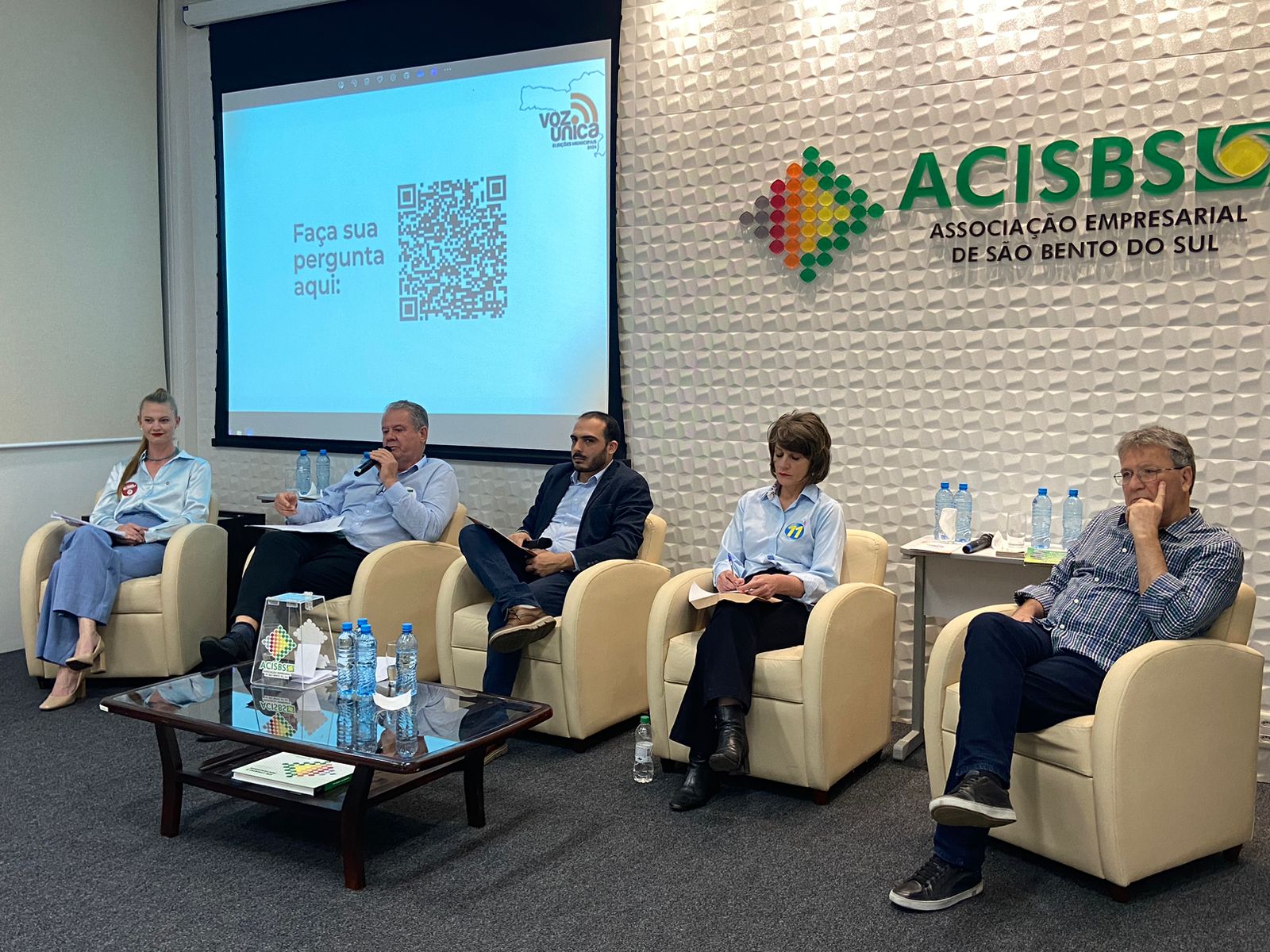 São Bento do Sul – Na noite de segunda-feira (30), a Acisbs promoveu uma mesa redonda com a presença de todos os candidatos à prefeitura de São Bento do Sul. Os participantes, Antonio Joaquim Tomazini Filho (Partido Liberal – PL), Jaciara Machuga (Partido dos Trabalhadores – PT), Luiz Alberto Sieves (Movimento Democrático Brasileiro – MDB) e Rosemari Cândido (Partido Progressistas – PP), tiveram a chance de apresentar seus projetos para o futuro de São Bento do Sul e discutir a cartilha “Voz Única”, entregue a eles no dia 26 de agosto.