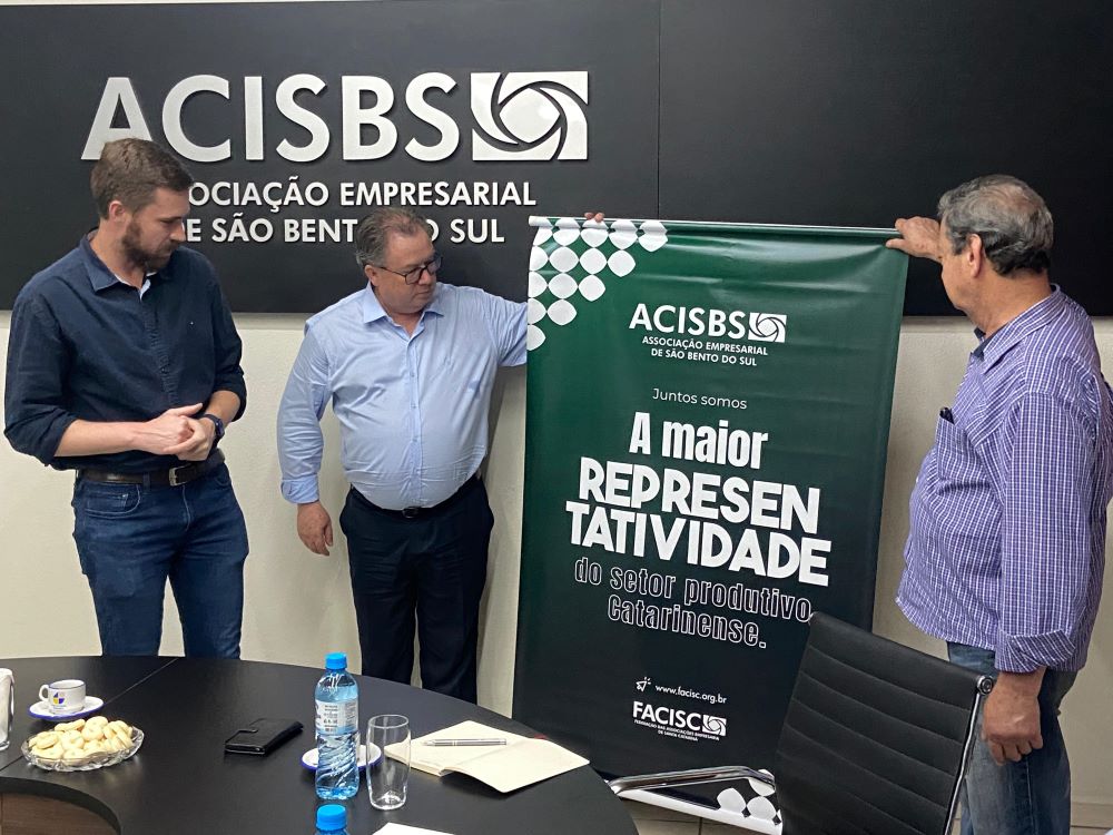São Bento do Sul – No início da tarde desta quarta-feira (30), o presidente da Federação das Associações Empresariais de Santa Catarina (FACISC), Elson Otto, esteve em São Bento do Sul para uma visita à Acisbs. Na oportunidade, o presidente da Associação, Gabriel Weihermann, apresentou os números de associados, soluções, núcleos e demais atividades promovidas pela entidade.
