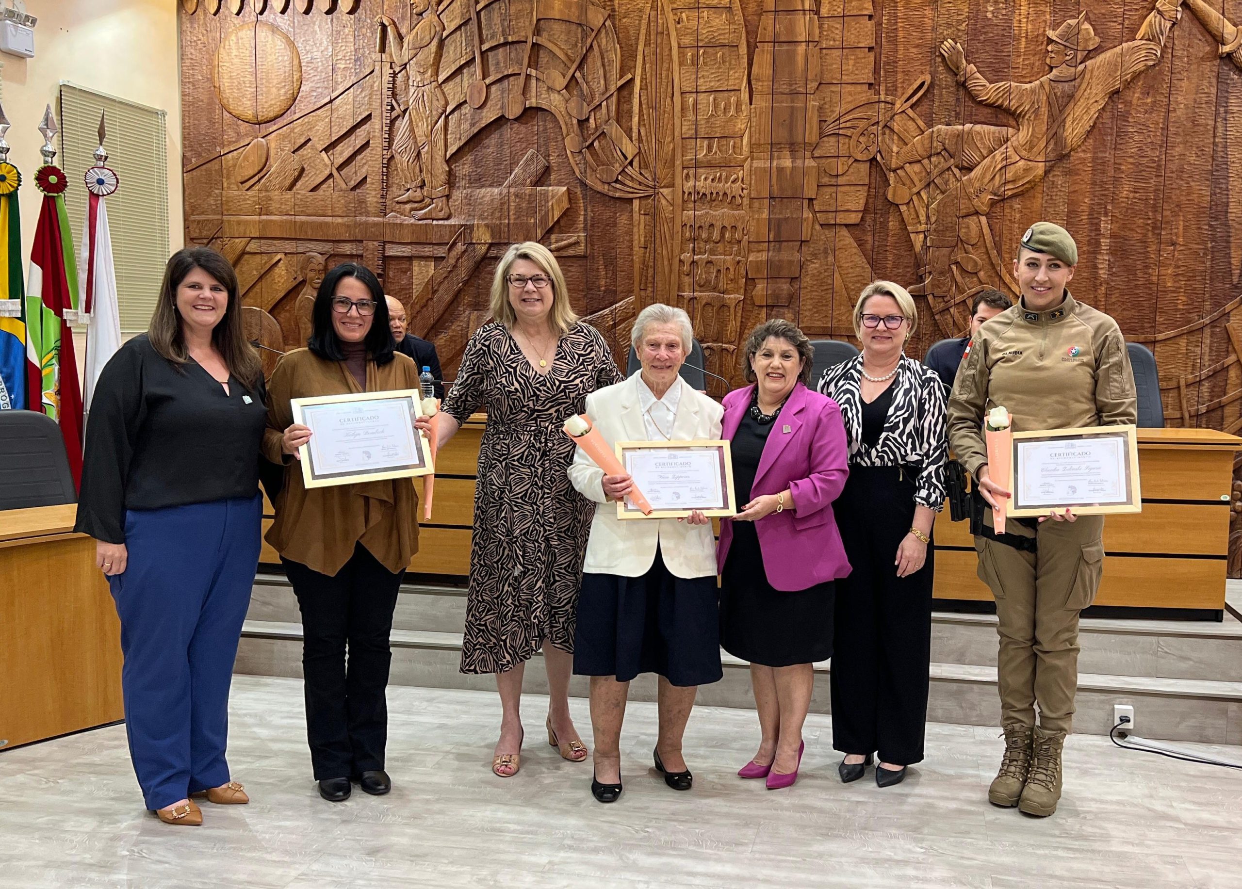 Durante a solenidade, foram homenageadas mulheres que se destacaram em suas áreas de atuação. As senhoras Nicia Terezinha Zschoerper (empresária), Cláudia Zelinski Figura (Cabo da Polícia Militar) e Kethlyn Dombeck (motorista da Coletivos Rainha) receberam certificados em reconhecimento ao impacto positivo de suas trajetórias.