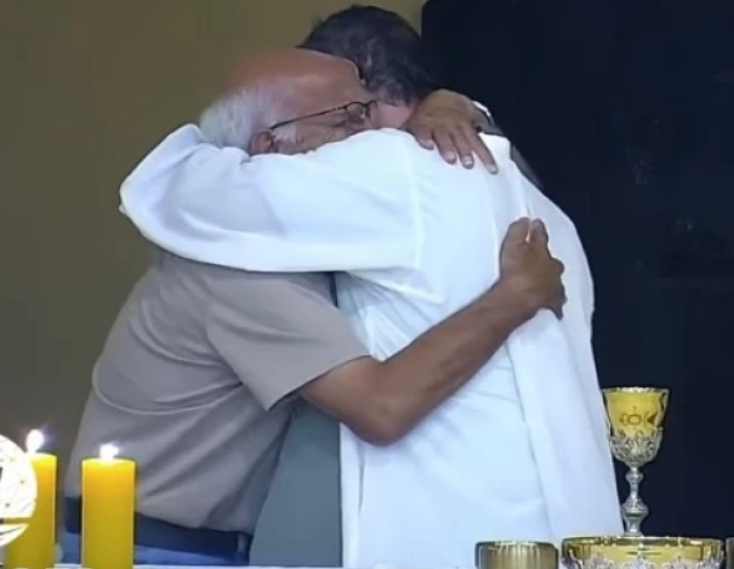 Visivelmente abalado, Marcos caminhou em direção ao padre Carlos Henrique, que se preparava para o rito da comunhão, e o abraçou em busca de consolo, interrompendo por alguns instantes a celebração. Sem saber, naquele momento, o motivo exato da aflição, o sacerdote deixou a hóstia sobre o altar e acolheu o fiel com um abraço silencioso, gesto que logo mobilizou outros membros da comunidade a se aproximarem para amparar o idoso.