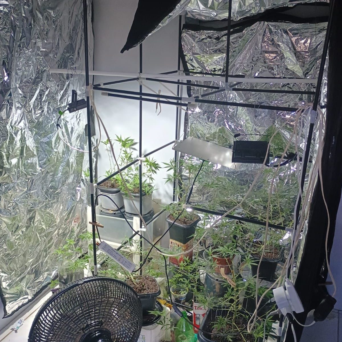Diante das evidências, as equipes realizaram diligências na residência do suspeito, onde foi encontrada uma estrutura utilizada para o tráfico. No local, havia uma estufa caseira com diversos pés de maconha em diferentes estágios de crescimento, além de equipamentos utilizados para o preparo, secagem, pesagem e embalagem da droga.