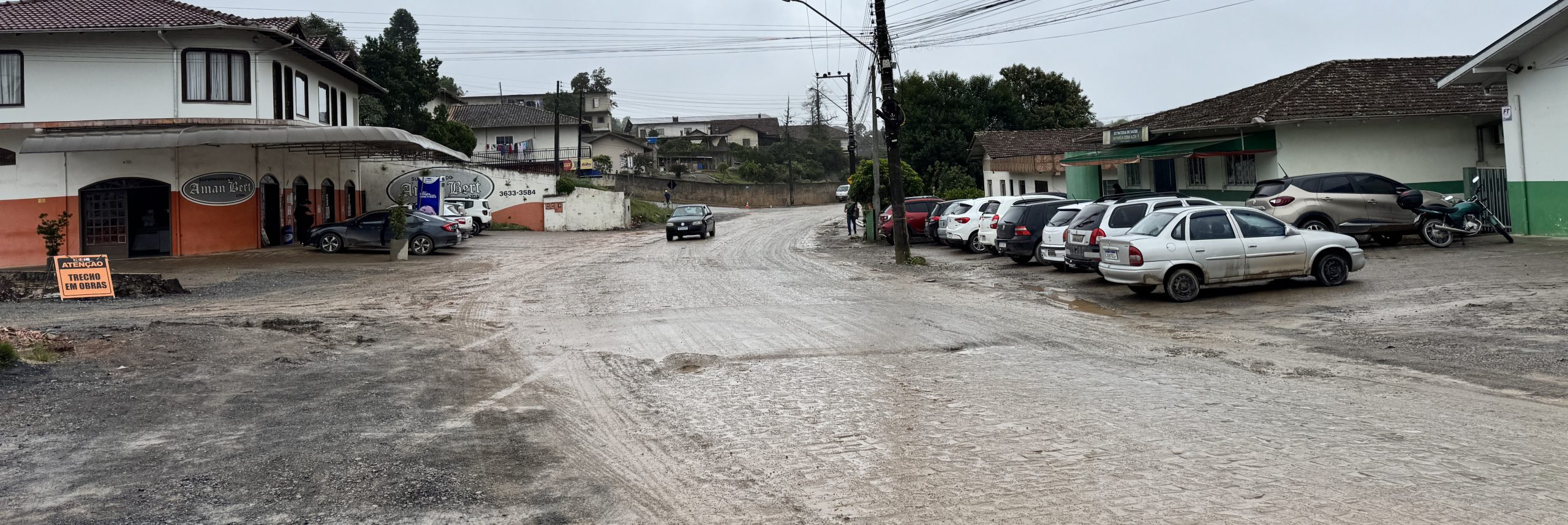 São Bento do Sul – A Rua Mathias Nossol, no bairro Serra Alta, virou sinônimo de preocupação, e até frustração, para moradores e comerciantes. A obra de revitalização, que terá também a nova pavimentação, há tempos aguardada, avança a “passos de tartaruga”, com máquinas e trabalhadores aparecendo esporadicamente no canteiro de obras. A comunidade reconhece a necessidade da intervenção, mas a lentidão está gerando poeira exagerada em dias de sol e lama nos dias de chuva, e os prejuízos começam ser contabilizados. Até às 10 horas desta segunda-feira (9), nenhum profissional ou equipamento, salvo do Samae que realiza algumas melhorias na rede de abastecimento de água, estavam operando ao longo da via.